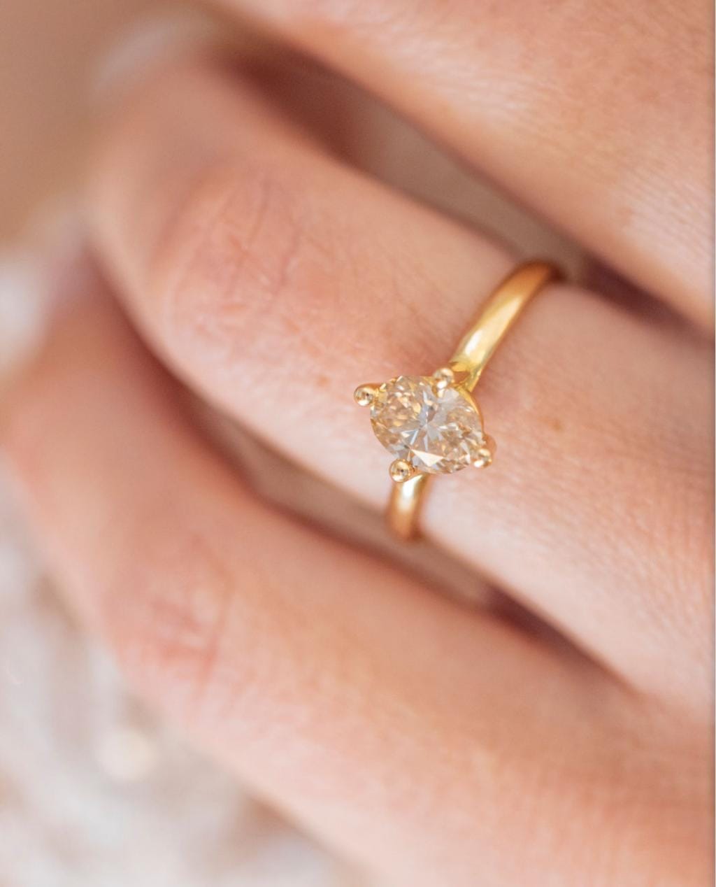Dieser einzigartige einkarätige Diamant in Champagnertönen wurde in eine Krappenfassung aus Gold 750 eingefasst. Der ovale Diamant kommt in dieser Fassart wundervoll zur Geltung, der warme Farbton des Gelbgold 750 Ringes harmoniert perfekt mit der Champagnerfarbe des aussergewöhnlichen Diamanten. Der ovale Diamant hat ein Karatgewicht von 1,04 Karat und ist in perfektem Ovalschliff geschliffen worden. Er stammt aus der Argyle Mine in Australien, die exquisite farbige Diamanten hervorgebracht hat. Seit 2020 sind die dortigen Diamantvorkommen jedoch erschöpft. So sind diese champagnerfarbigen australischen Edelsteine rar geworden, da sich nicht mehr viele von ihnen auf dem Edelsteinmarkt befinden. Eine echte Rarität ist dieser ovale Diamant, dessen zahlreiche Facetten kaleidoskopartig das Licht immer wieder anders brechen. Die Krappen Fassung mit 4 Krappen hält den ovalen Diamanten sicher im Ring, aber verdeckt dabei nicht diesen aussergewöhnlichen Edelstein, sodass der Diamant auch von der Seite Licht erhalten kann und wunderschön funkelt. Dieser Ring ist ein Einzelstück, kann jedoch gerne auf Wunschgrösse verändert werden. Bitte die Ringgrösse bei der Bestellung mit angeben! Jedes Schmuckstück wird in einer schönen Schmuckschachtel geliefert, auf Wunsch auch gerne als Geschenk verpackt, natürlich ohne Aufpreis!