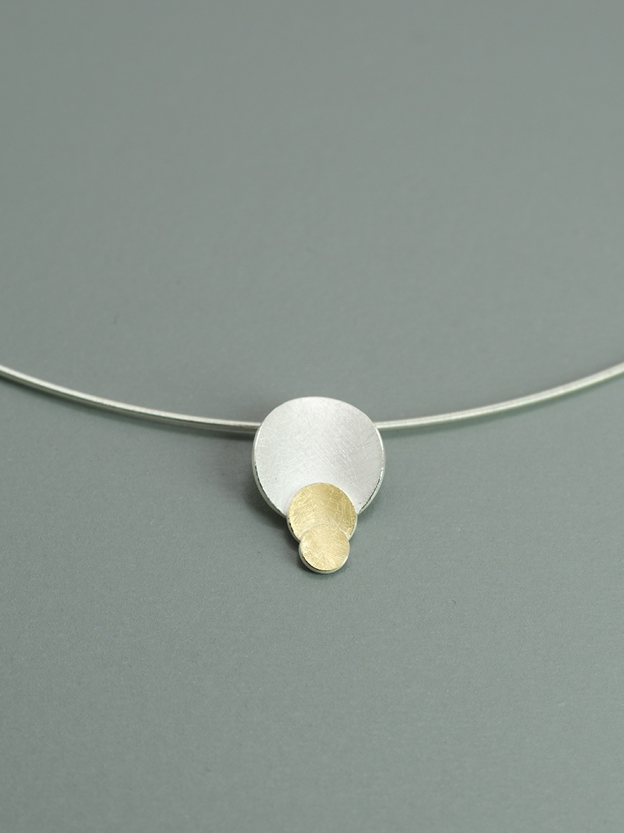 Der Anhänger Chips erstrahlt in Silber und Gold 900.